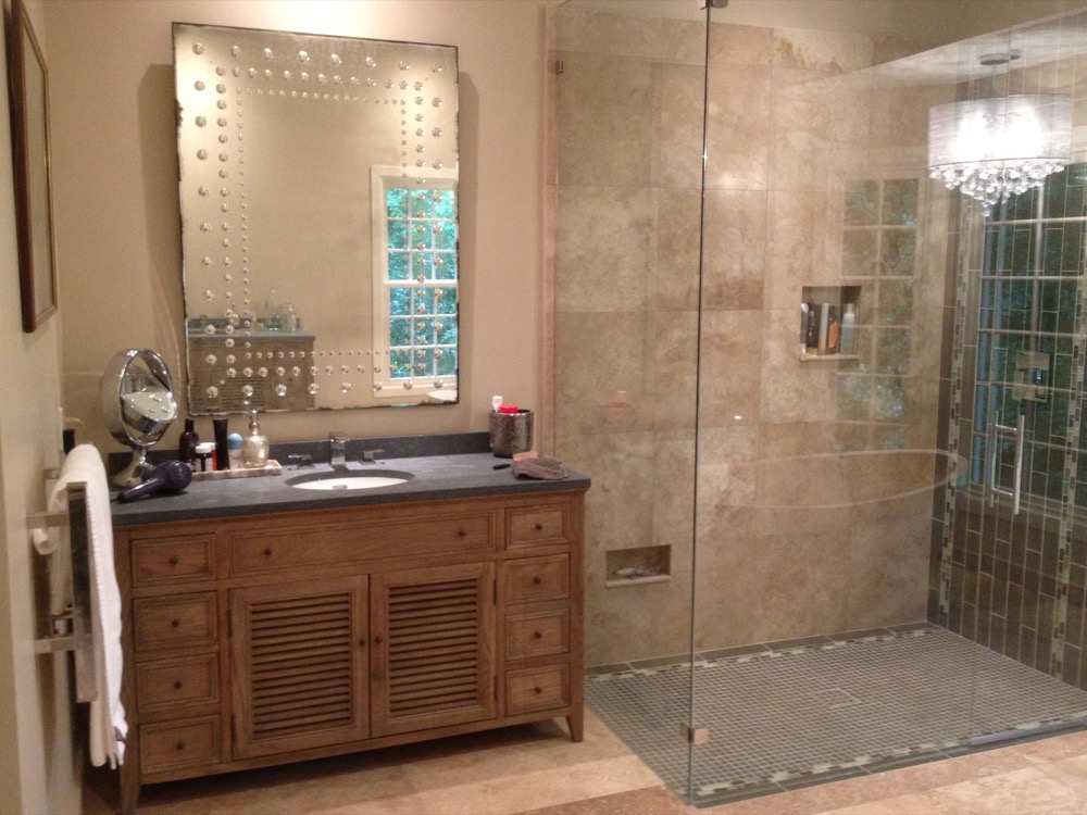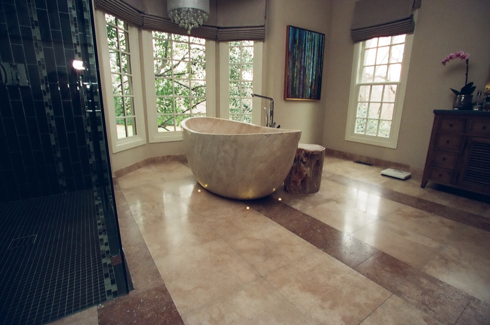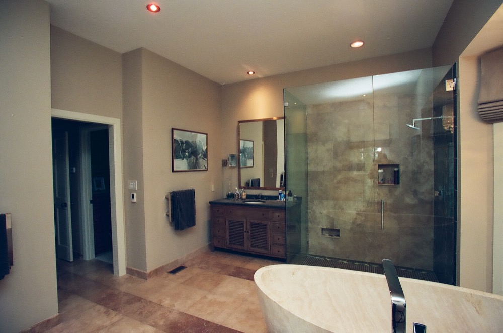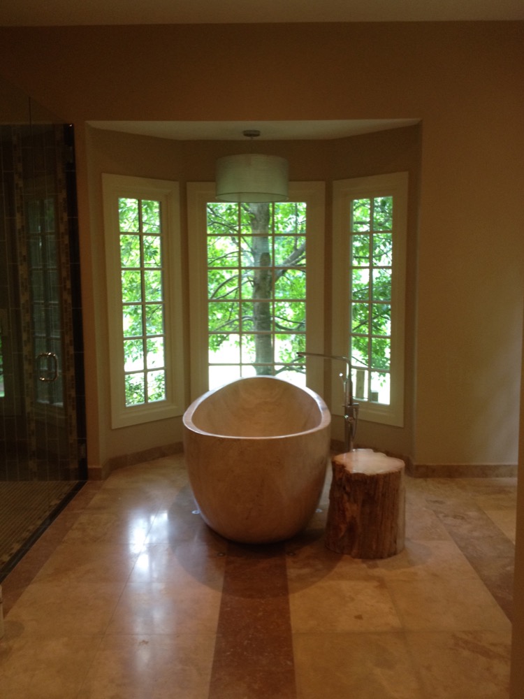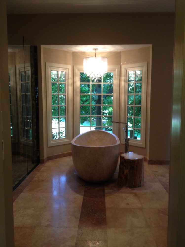 Master Bath Remodel Transforming a Master Bath into a Luxury Oasis… Master Bath Remodel that we took on for a client. Amenities included new vanities, heated floor tile, towel bars, curbless shower and the show piece of the room, a sculptured tub.