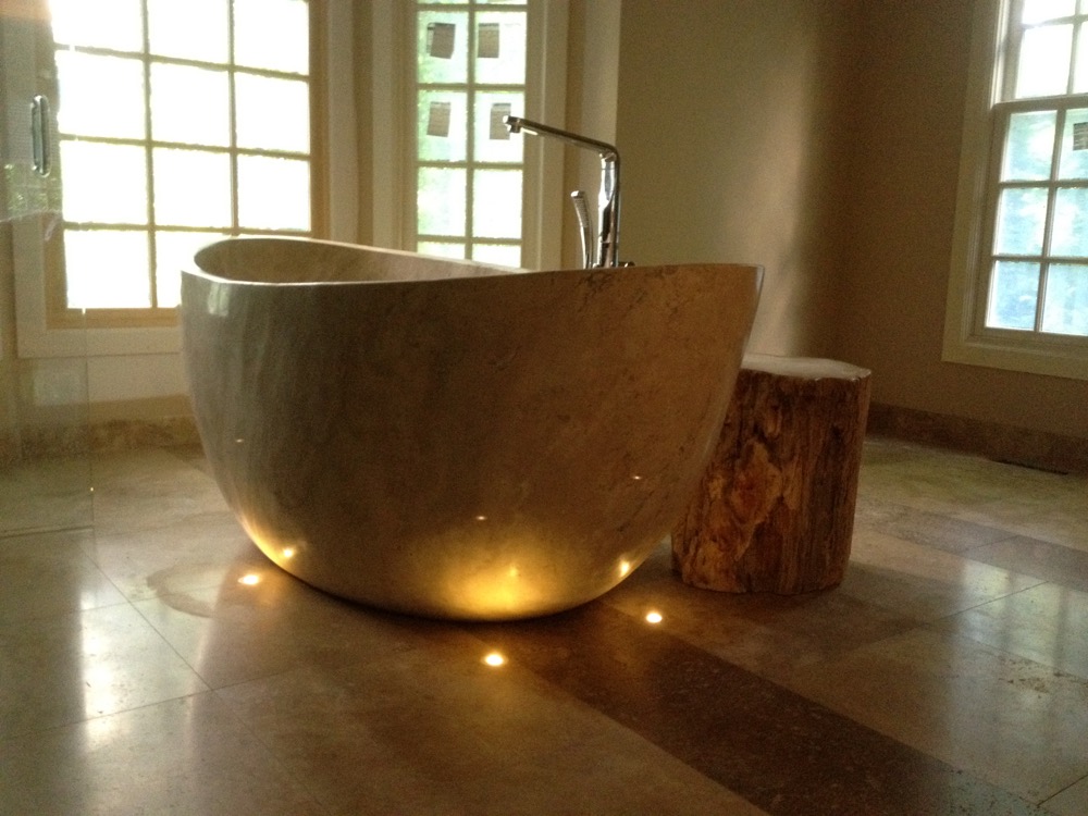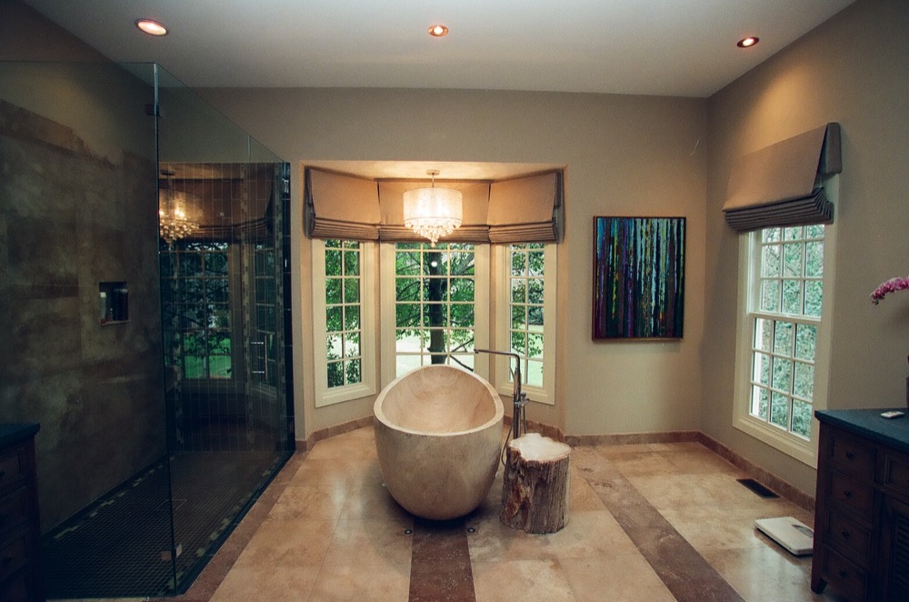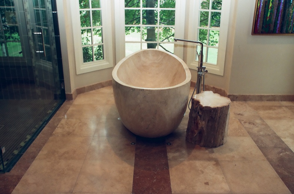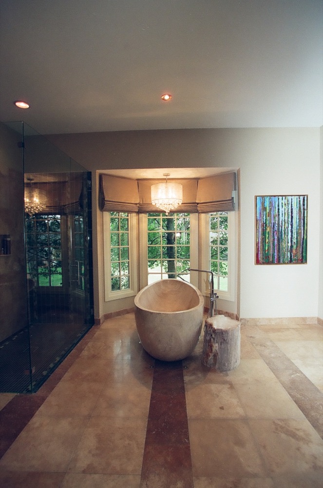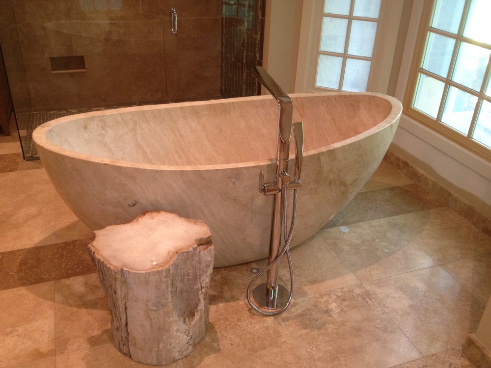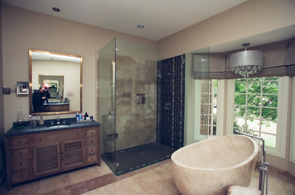 Master Bath Remodel Transforming a Master Bath into a Luxury Oasis… Master Bath Remodel that we took on for a client. Amenities included new vanities, heated floor tile, towel bars, curbless shower and the show piece of the room, a sculptured tub.